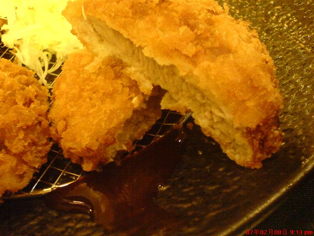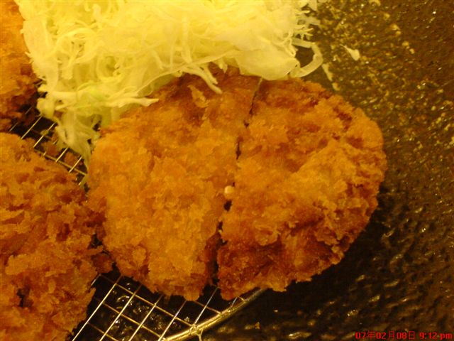 不過有偷看別人的豬排,似乎另一種皮就變太厚了。我是不喜歡太厚的炸衣的人。因此看到門口菜單上的炸蝦我就不會想吃了